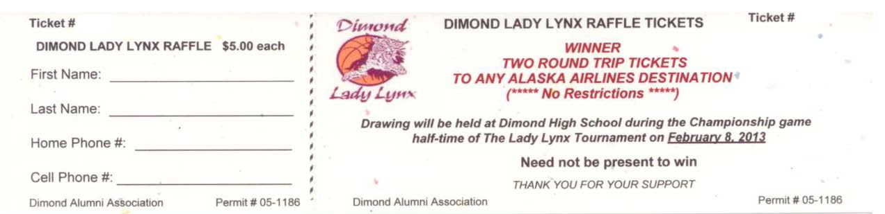 The AK Gold Basketball Program in conjunction with the Dimond Alumni Association will be raffling off two round trip tickets to any Alaska Airlines destination. There are NO RESTRICTIONS/BLACK OUT DATES associated with these tickets. Tickets are $5 a piece. The AK Gold program will receive half of the purchase price of each ticket sold. The money raised will go towards continued support of the program members (equipment, uniforms, reduced fees, etc.). Please fill out the form below and click the “Donate” button to complete your purchase. Once payment is received we will send you your ticket number(s) to the email address supplied on the form. You may also make arrangements to pick them up with the player who sold you the tickets. Tickets will be available for purchase through February 1st. Drawing will be held on February 8th during the halftime session of the championship game in the Lady Lynx Tournament. YOU DO NOT HAVE TO BE PRESENT TO WIN!